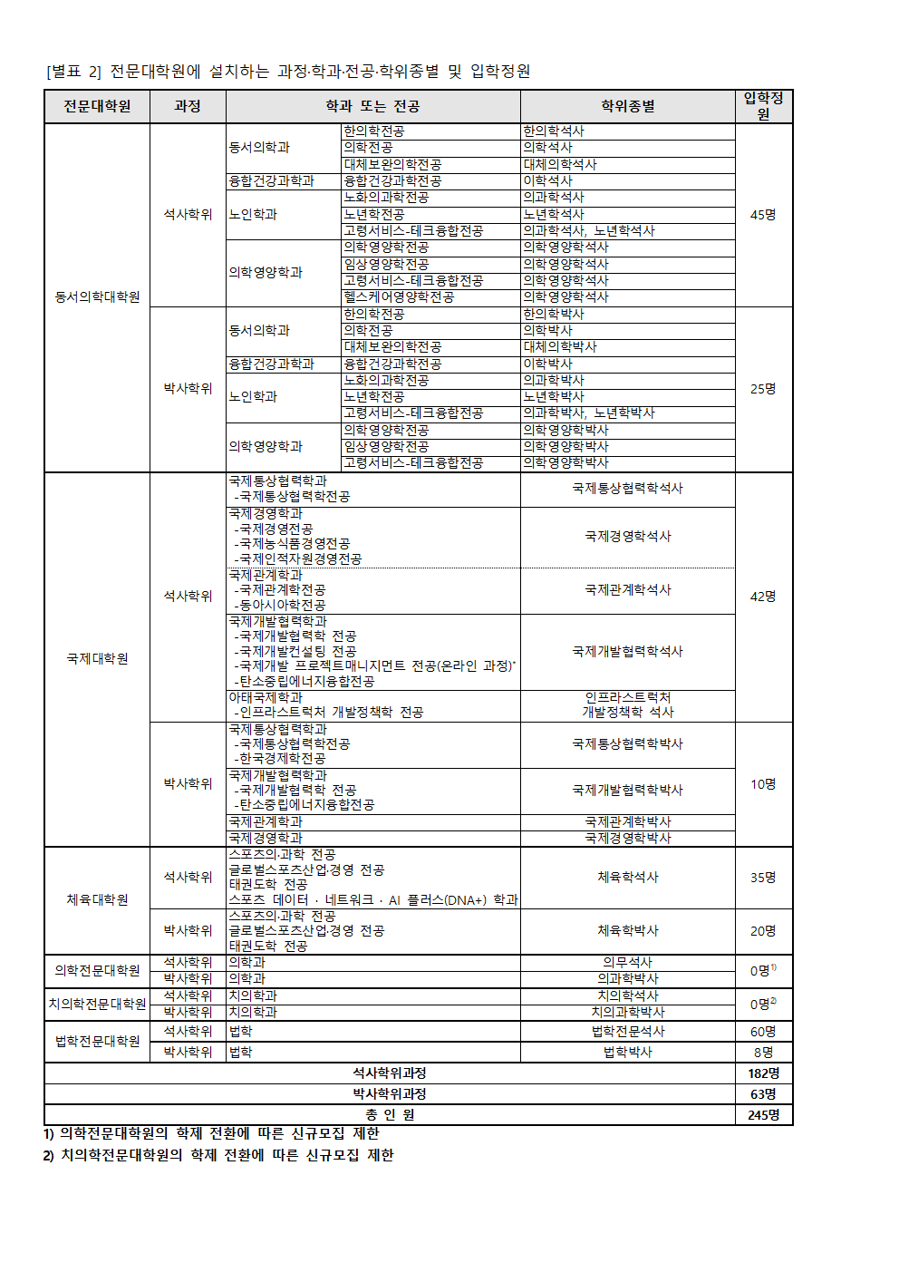 [별표 2] 전문대학원에 설치하는 과정·학과·전공·학위종별 및 입학정원.hwp