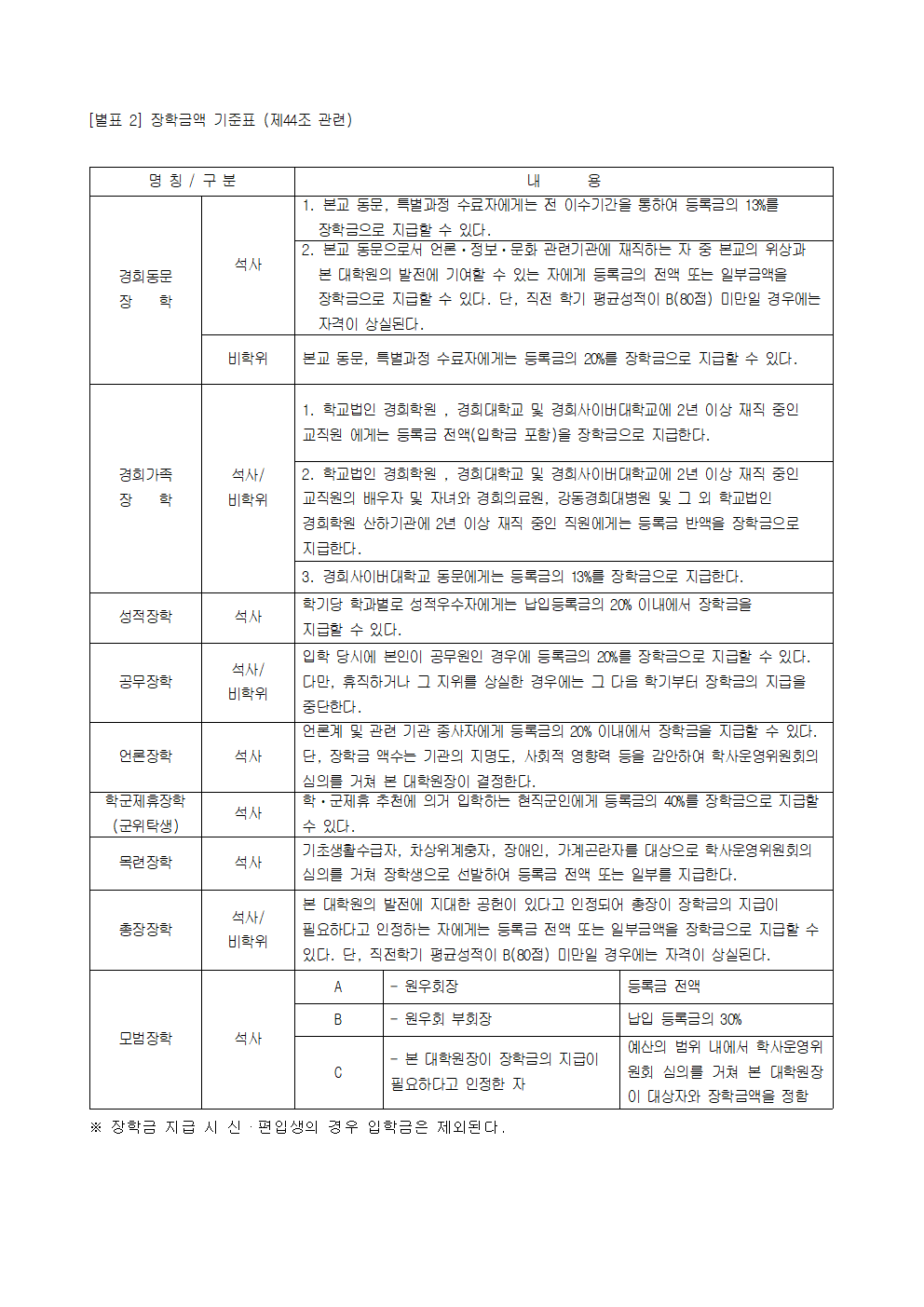 [별표 2] 장학금액 기준표 (제44조 관련).hwp
